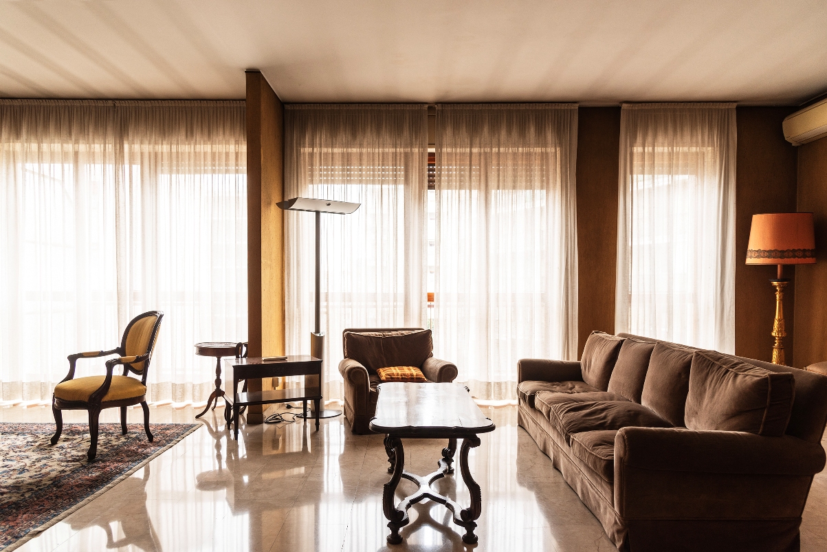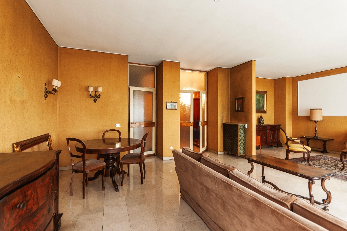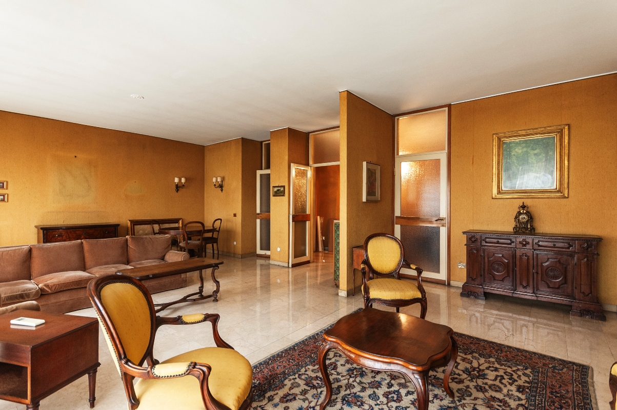 L’immobile, ubicato in elegante palazzo signorile anni ’60 dotato di servizio portineria e doppi ascensori, si trova al quinto piano in doppia esposizione. Molto luminosa la zona giorno che risulta di ampio respiro e dotata di grande charme. Al momento l’appartamento è diviso in: ampio ingresso, salone triplo con affaccio sulla balconata, cucina abitabile con ingresso di servizio dal balcone e zona office con cameretta e bagno di servizio; zona notte con due ampie camere matrimoniali e secondo bagno con antibagno. Nella ristrutturazione possibilità di ampliare la terza camera e crearne una quarta o studio separato dal salone. Completa la proprietà una cantina. Riscaldamento centralizzato a termosifoni, impianto di aria condizionata.