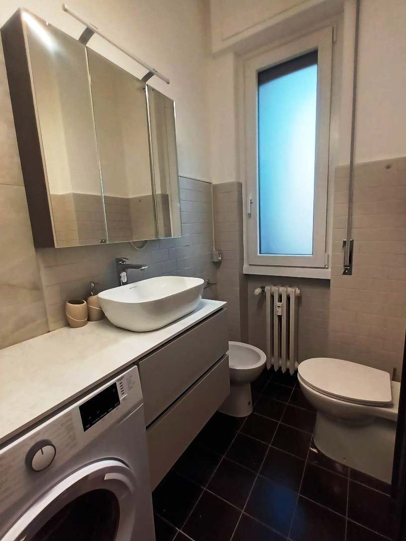 In palazzo anni ’60 con servizio di portineria ed ampi spazi comuni si propone in affitto delizioso bilocale posto all’ultimo piano servito da ascensore. Ingresso separato, cucina abitabile con accesso sulla balconata, ampia camera da letto, con ulteriore accesso all’esterno, bagno finestrato. L’appartamento viene consegnato parzialmente arredato. Riscaldamento centralizzato a termosifoni, acqua calda autonoma, lavastoviglie e lavatrice, doppi infissi, aria condizionata. Libero da fine maggio.