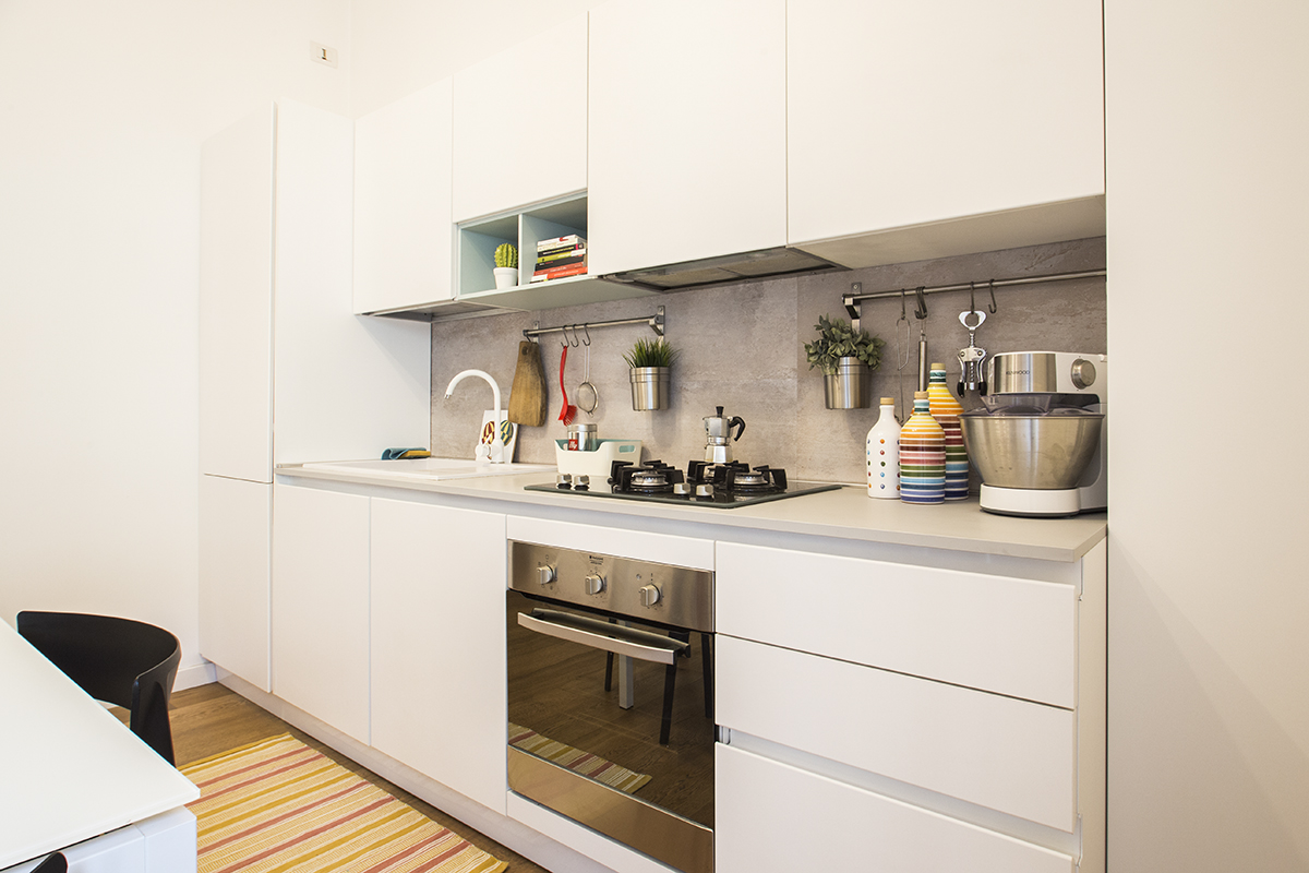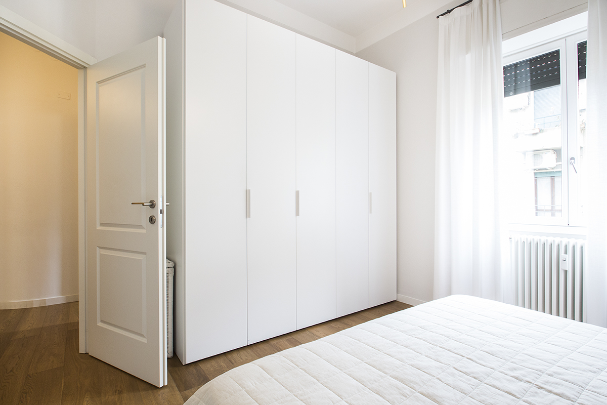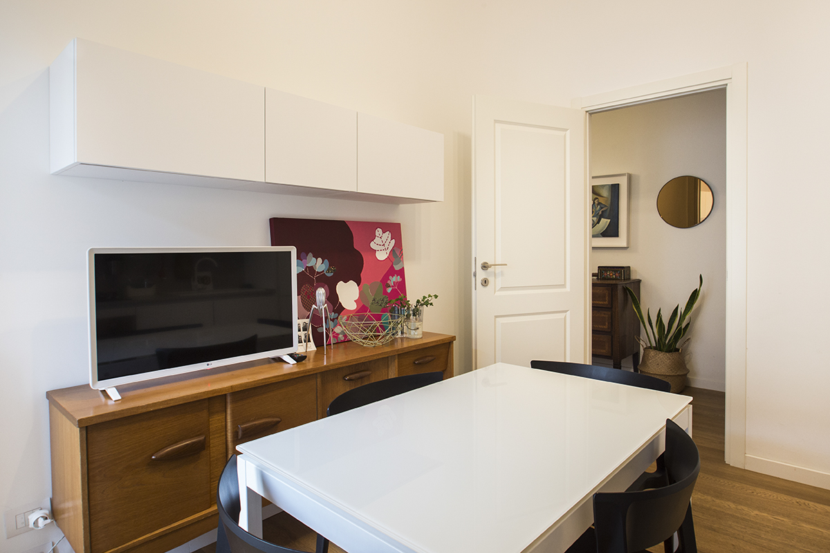 L’appartamento, sito al quarto piano servito da ascensore, è stato ristrutturato completamente pochi anni fa, ed è composto da ingresso, cucina abitabile con locale lavanderia e balcone, soggiorno, due camere da letto, bagno finestrato con doccia.
